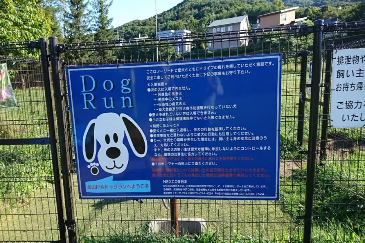 札樽自動車道下り、金山パーキングエリア・下りのドッグラン施設情報。